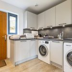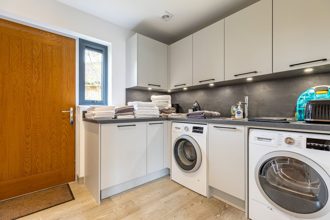 Further along, a generous and highly functional utility room provides excellent additional storage, along with space for a washer, dryer and freezer, and houses the home’s boiler and systems.