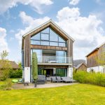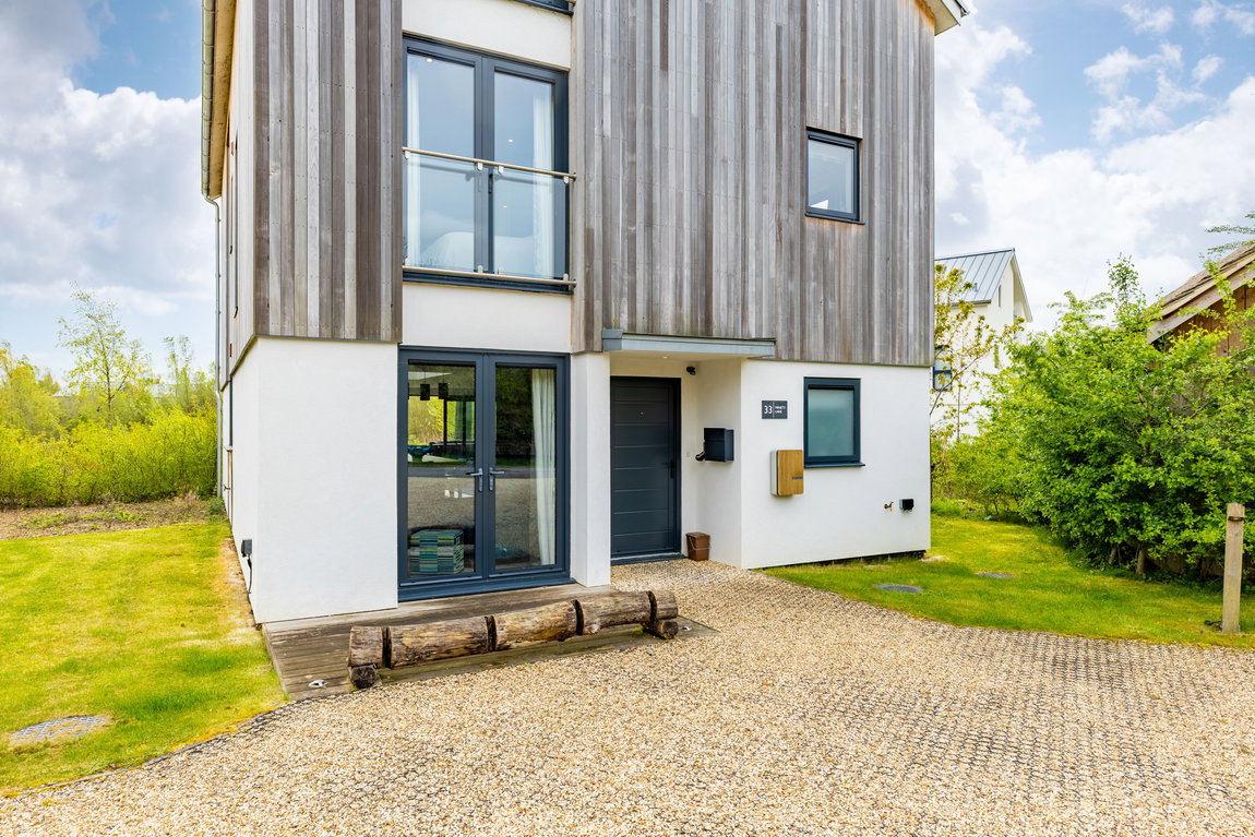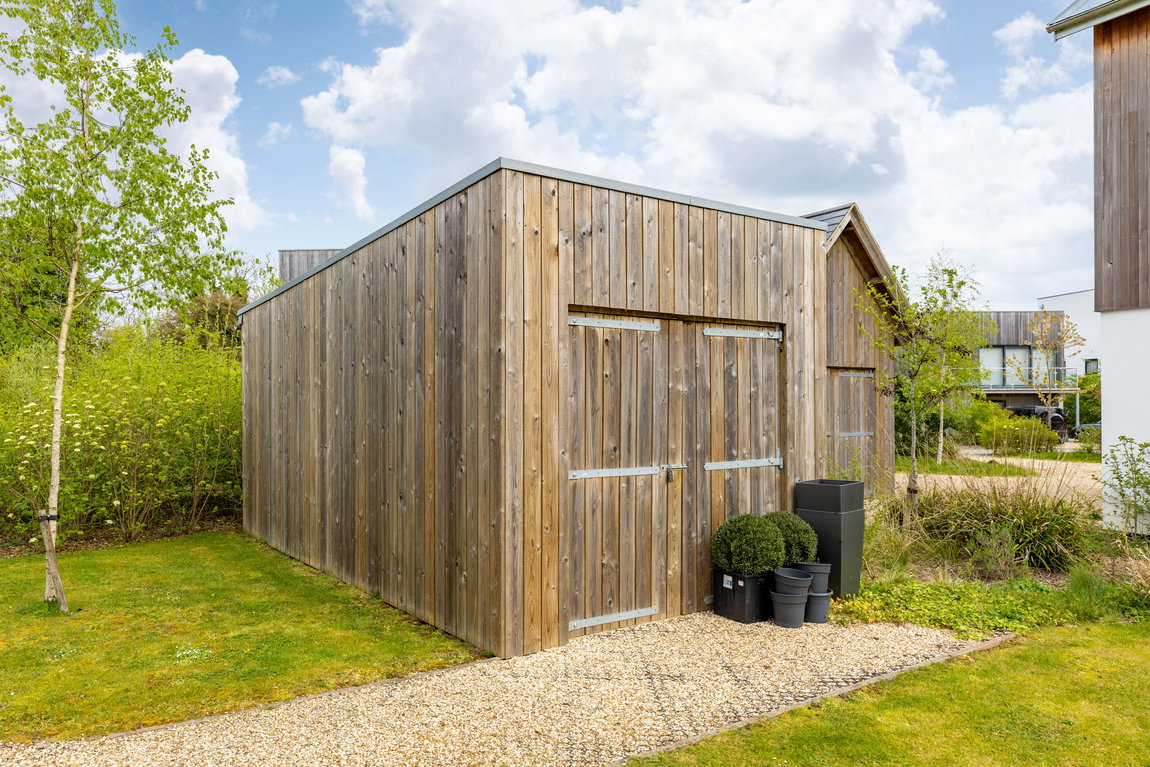 Externally, the property is finished in a combination of cedar cladding and rendered elevations, creating a contemporary yet sympathetic aesthetic that complements the natural surroundings of the Lower Mill Estate.