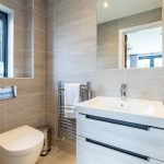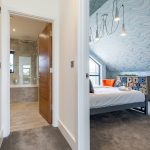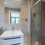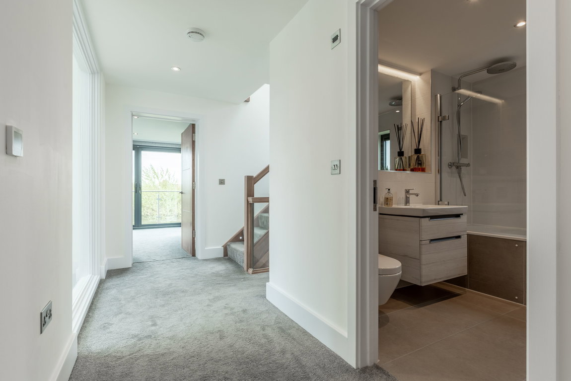The en-suite is finished to an exceptional standard, featuring full tiling, a walk-in shower and contemporary wall-hung sanitaryware by Villeroy & Boch, complemented by automatic lighting.